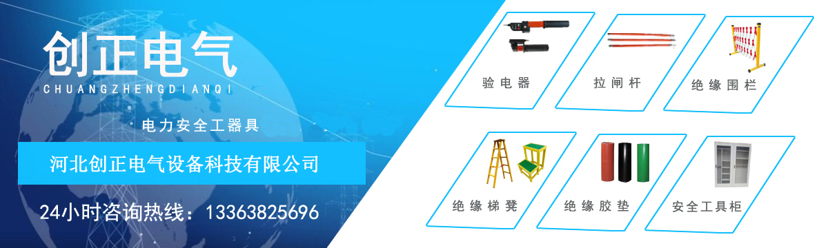 河北創正電氣設備科技有限公司主要經營產品包括:高壓驗電器、高壓接地線、高壓拉閘桿、絕緣橡膠墊、絕緣伸縮圍欄、絕緣梯、安全工具柜、絕緣凳、擋鼠板、安全警示帶、絕緣臺、安全帶、腳扣、安全帽、標識牌、絕緣手套、絕緣靴等電力安全工器具。公司以“服務電力系統,努力永無止境”為目標,以“人才就是生產力”為戰略,以經驗為依托,以理念為指導,以員工為基礎,以市場為支撐,貫徹“以顧客需求為上”的經營理念,以合格的質量,合理的價位,適應市場的需求。 [詳細介紹]